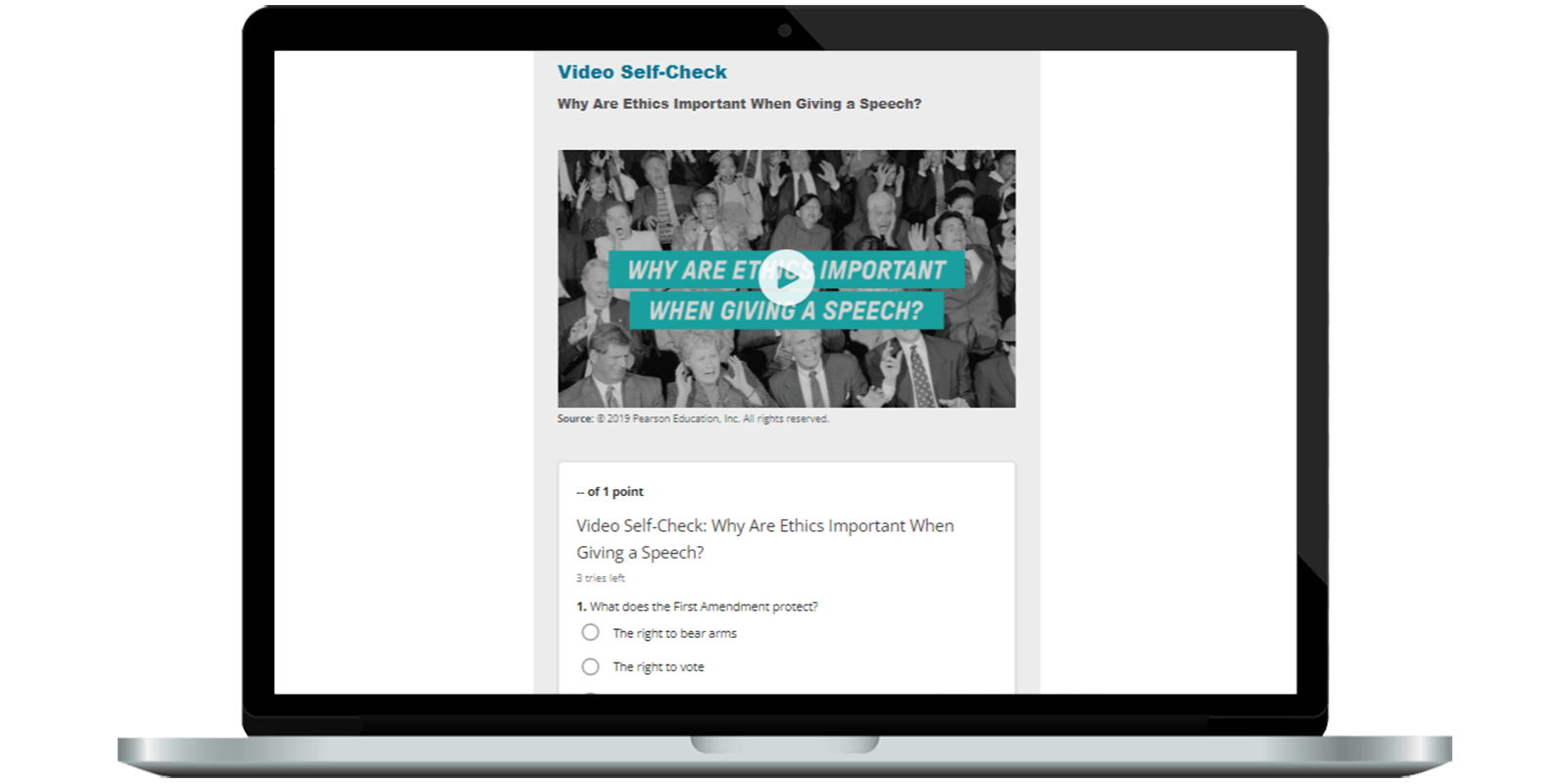 When reading about John F. Kennedy’s inaugural address, communication students can watch a video of the speech itself. Embedded multimedia examples like this boost comprehension.