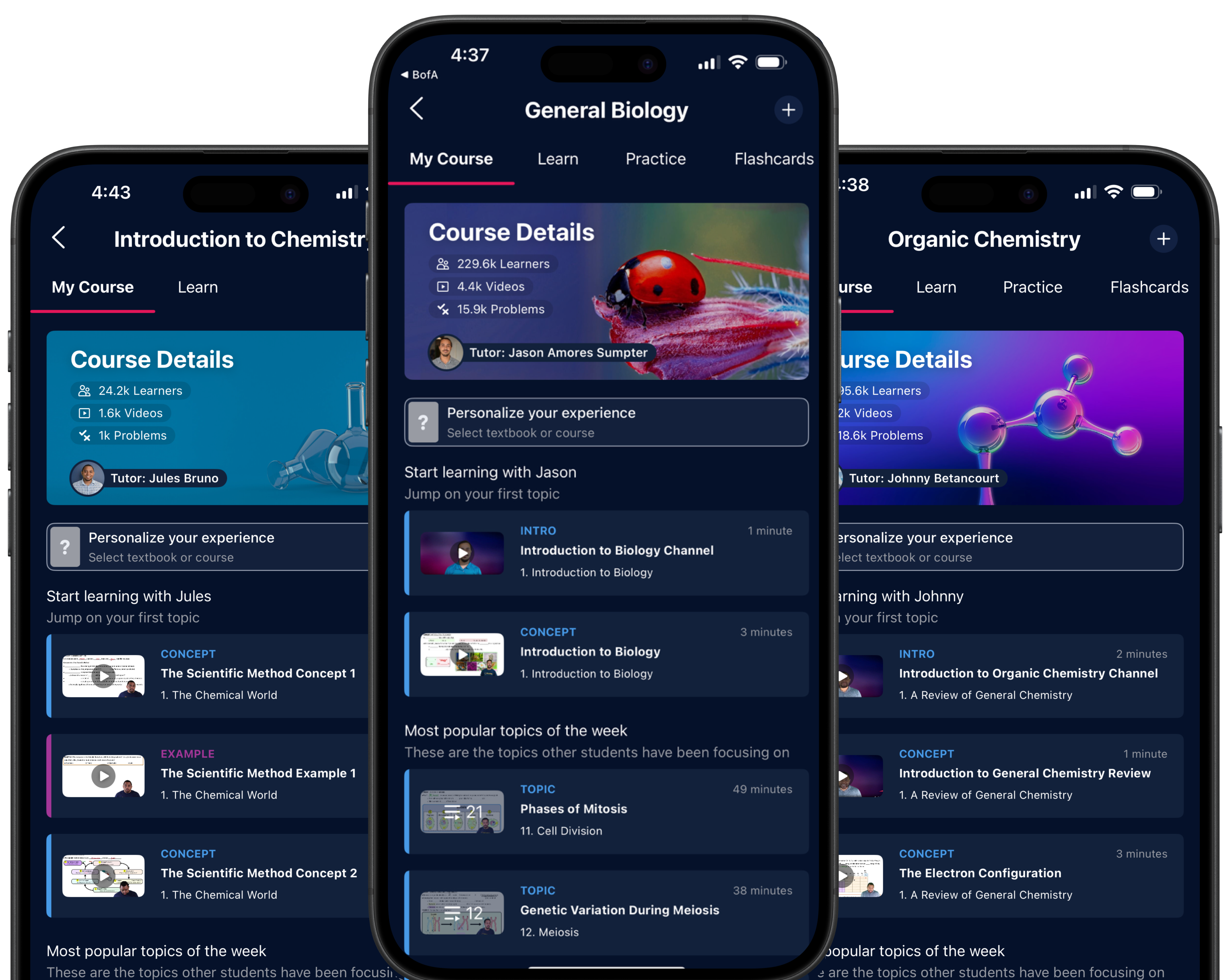 We currently offer 20+ subjects and we’re always adding new content and features. If you don’t see a subject you’re looking for, check back in later to see if we’ve added it.