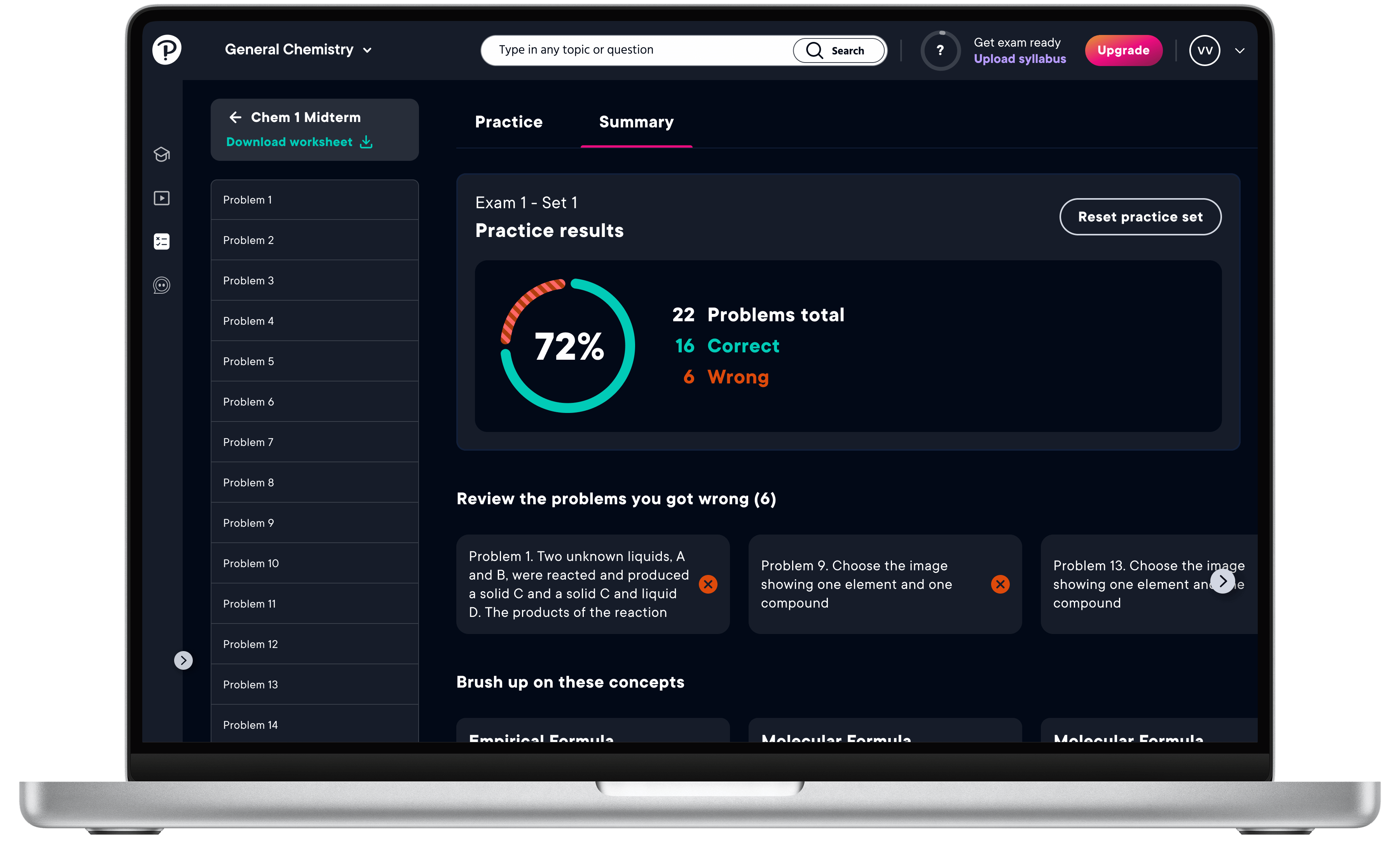 Get the confidence to perform at your best on exam day with a personal study plan and practice problems when you upload your syllabus.