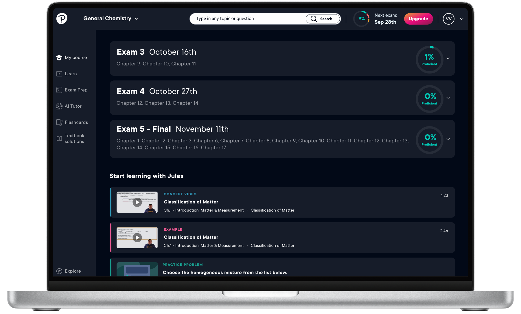 Get the confidence to perform at your best on exam day with a personal study plan and practice problems when you upload your syllabus.
